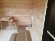 В комплект бани входит стол и две скамейки из доски 19мм, как на фото. Есть комплекты из более толстой доски а также из кедра, смотрите в доп комплектации.