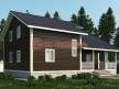 На фото представлен проект аккуратного дома №179 габаритами 9х12 метров и отличной планировкой общей площадью 198 квадратных метров. Сруб с мансардой, может использоваться как зимний, для постоянного проживания, коттедж.