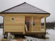 На фото представлен проект дачного дома №192 габаритами 6х9 метров и отличной планировкой общей площадью 54 квадратных метров. Можно выделить несколько особенностей проекта: терраса, туалет, ванная, санузел. Дом одноэтажный, может использоваться как дачный.