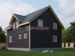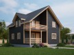 На фото представлен проект загородного дома №273 габаритами 9х9 метров и отличной планировкой общей площадью 162 квадратных метров. Можно выделить несколько особенностей проекта: терраса, балкон, туалет, ванная, санузел, котельная. Коттедж полутораэтажный, это означает, что первый этаж полностью сделан из бруса, а второй сделан наполовину из бруса, наполовину по каркасной технологии (по линии окна).