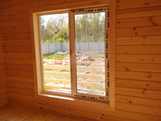 Окна мы устанавливаем настоящие деревянные стеклопакеты с фурнитурой как на пластиковых окнах, дерево используется клееное, повторюсь, не имитация деревянных стеклопакетов, а именно качественные окна.