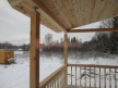 На террасе при условии что она есть делаем перила из строганной доски со всех сторон, столбы террасные также строганные, а не обрезки профилированного бруса с шипом и пазом. Домкратики на столбах для дальнейшей регулировки. Балясины будут сделаны аккуратно. Обратите внимание что в дешёвых случаях это может быть и будет просто вагонка прибирая к неотесанной доске снаружи и столбы будут не квадратные а просто профилированный брус как на видео.