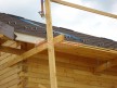 Главная проблема брусовых домов — усадка, после которой в срубе возникают щели в палец толщиной. Так случается, когда строят из дешёвого сырого бруса, плотно сажая венцы на гвозди (деревянные или металлические — без разницы). Мы же тратим время на сборку со сверлением. То есть сажаем брусья на металлические гвозди и в верхнем венце высверливаем отверстие под каждую шляпку. Поэтому во время усадки бруски не зависают на гвоздях, деформируя сруб, а свободно по ним скользят. Технология трудо- и времязатратная, но результат потрясающий — даже в срубах из сырого бруса практически нет щелей.