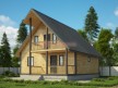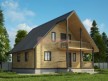 На фото представлен проект деревянного дома №243 габаритами 8х8 метров и отличной планировкой общей площадью 125 квадратных метров. Можно выделить несколько особенностей проекта: терраса, балкон, веранда, туалет, ванная, санузел, котельная. Коттедж с мансардой, может использоваться как зимний, для постоянного проживания, коттедж.