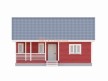На фото представлен проект деревенского дома №272 габаритами 7.5х10 метров и отличной планировкой общей площадью 75 квадратных метров. Можно выделить несколько особенностей проекта: терраса, туалет, санузел. Домик одноэтажный, может использоваться как дачный.