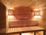 В парной можно сделать светильники по углам или на стене, проводка к ним тянется не горючим кабелем, он не расплавится от жары.