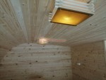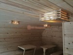 В комнату отдыха, да и в другие помещения кроме парной можно поставить квадратные светильники, они могут быть с жёлтыми стеклами или с белыми.